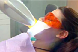 Более востребовано сегодня химическое отбеливание, которое позволяет за одну процедуру, то есть за 1,5–2 часа, получить великолепный и устойчивый результат. Принцип действия химического отбеливания заключается в нанесении на зубы и активации ультрафиолетом специального химического состава, содержащего перекись карбамида. При этом перекись карбамида распадается и выделяет активный атомарный кислород, проникающий в твердые ткани зуба и оказывающий высокий отбеливающий эффект не только на поверхности, но и в глубоких слоях эмали.