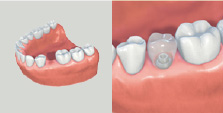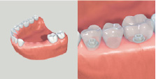 Замена одного зуба в передней и задней областях с помощью коронки с опорой на имплантат.